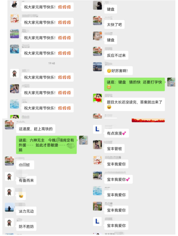 食堂内的猜谜活动进展的轰轰烈烈,而公司微信群内的线上猜谜分会场,也是异常的热闹火爆!!
